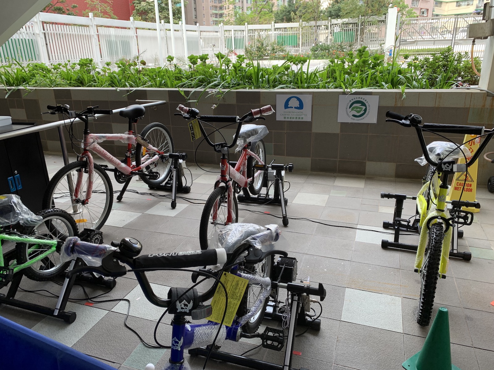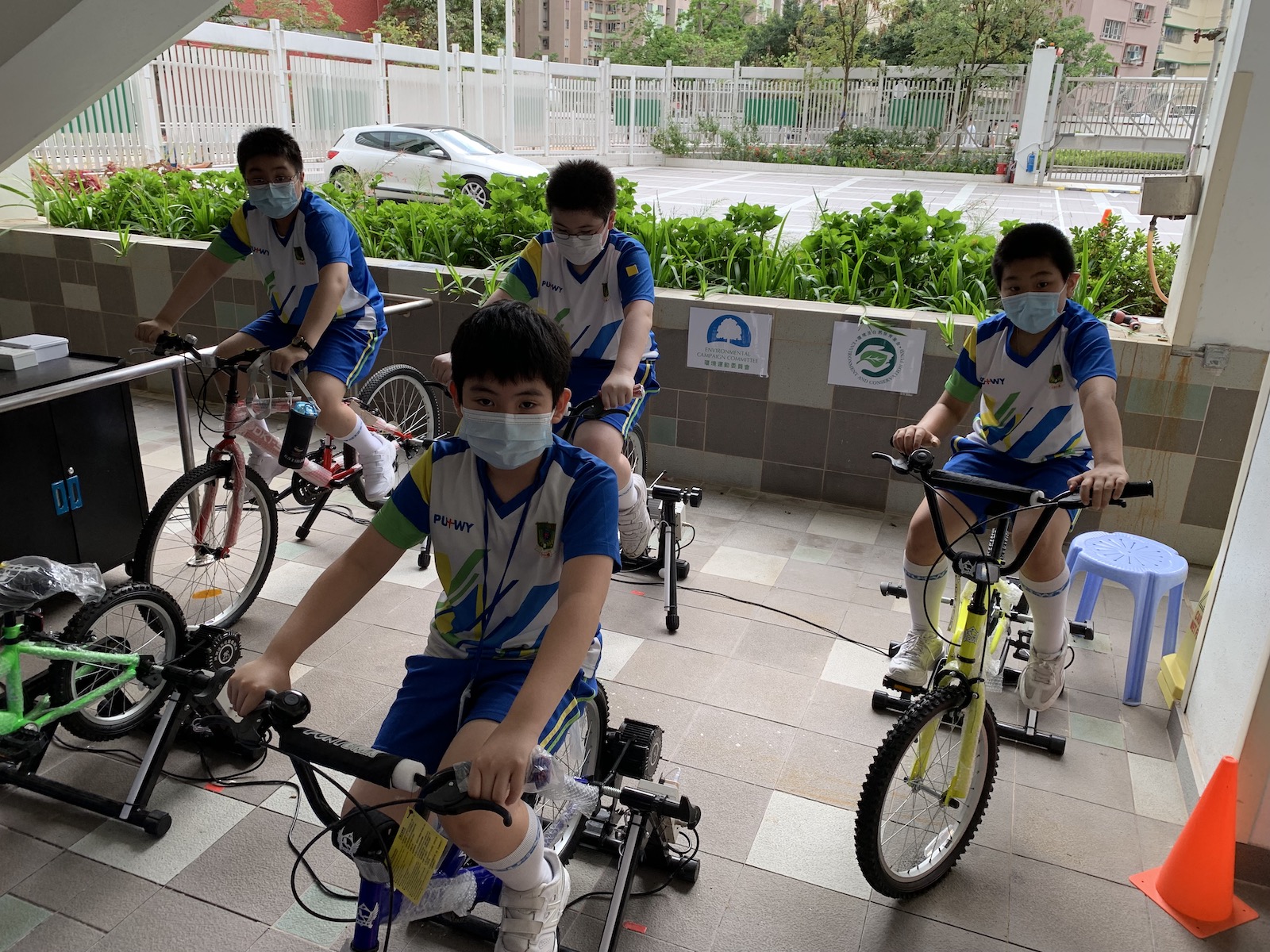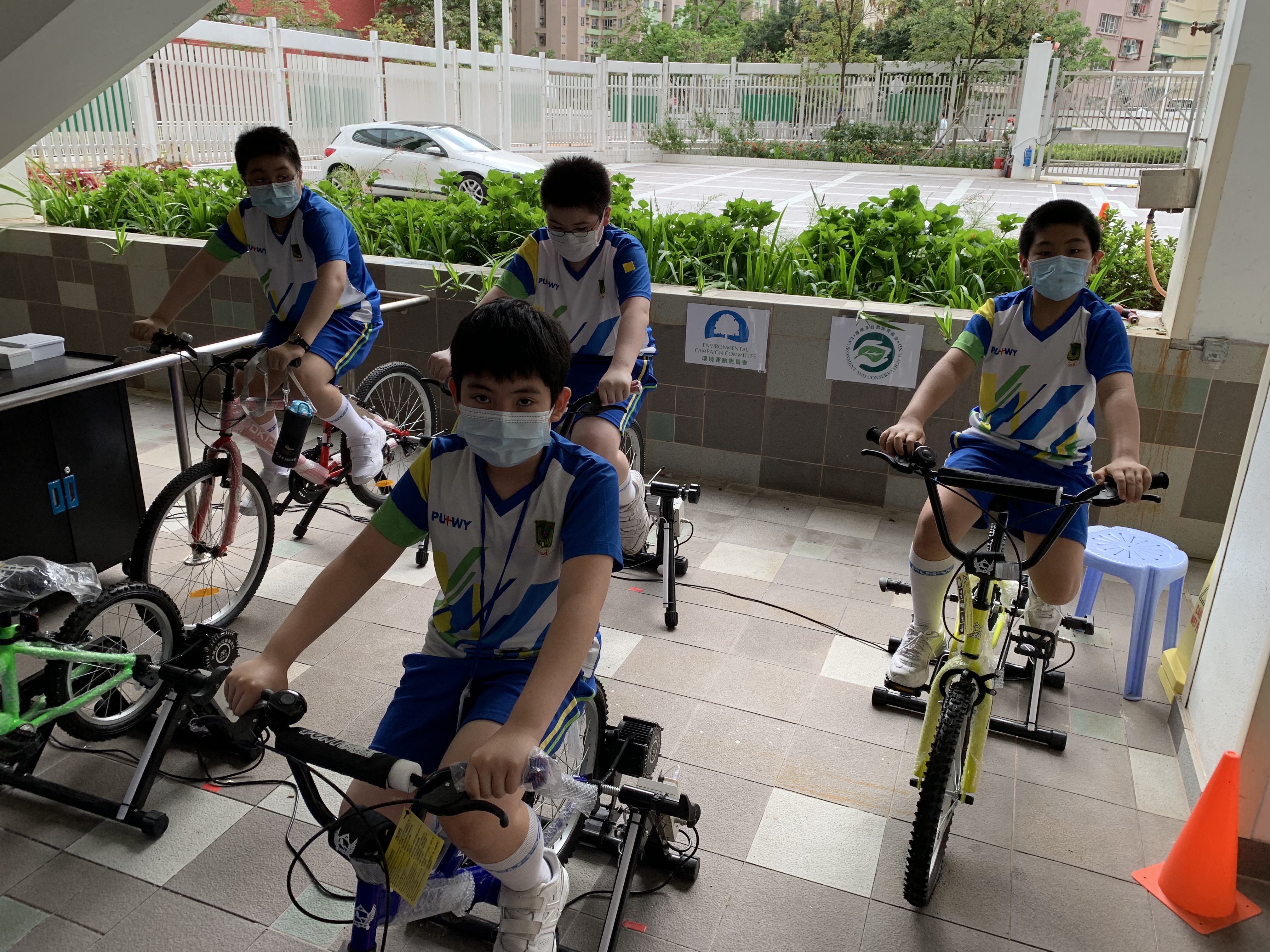透過「『踏』出健康人生路活動」,讓學生「寓運動於環保」,一邊做運動,一邊發電、儲電。
