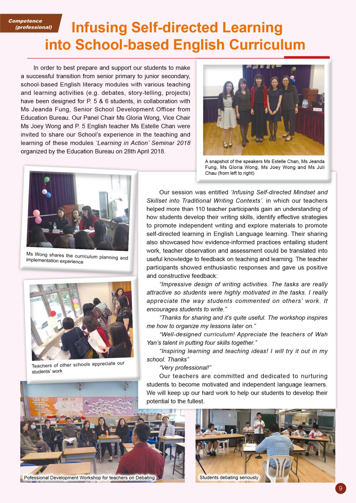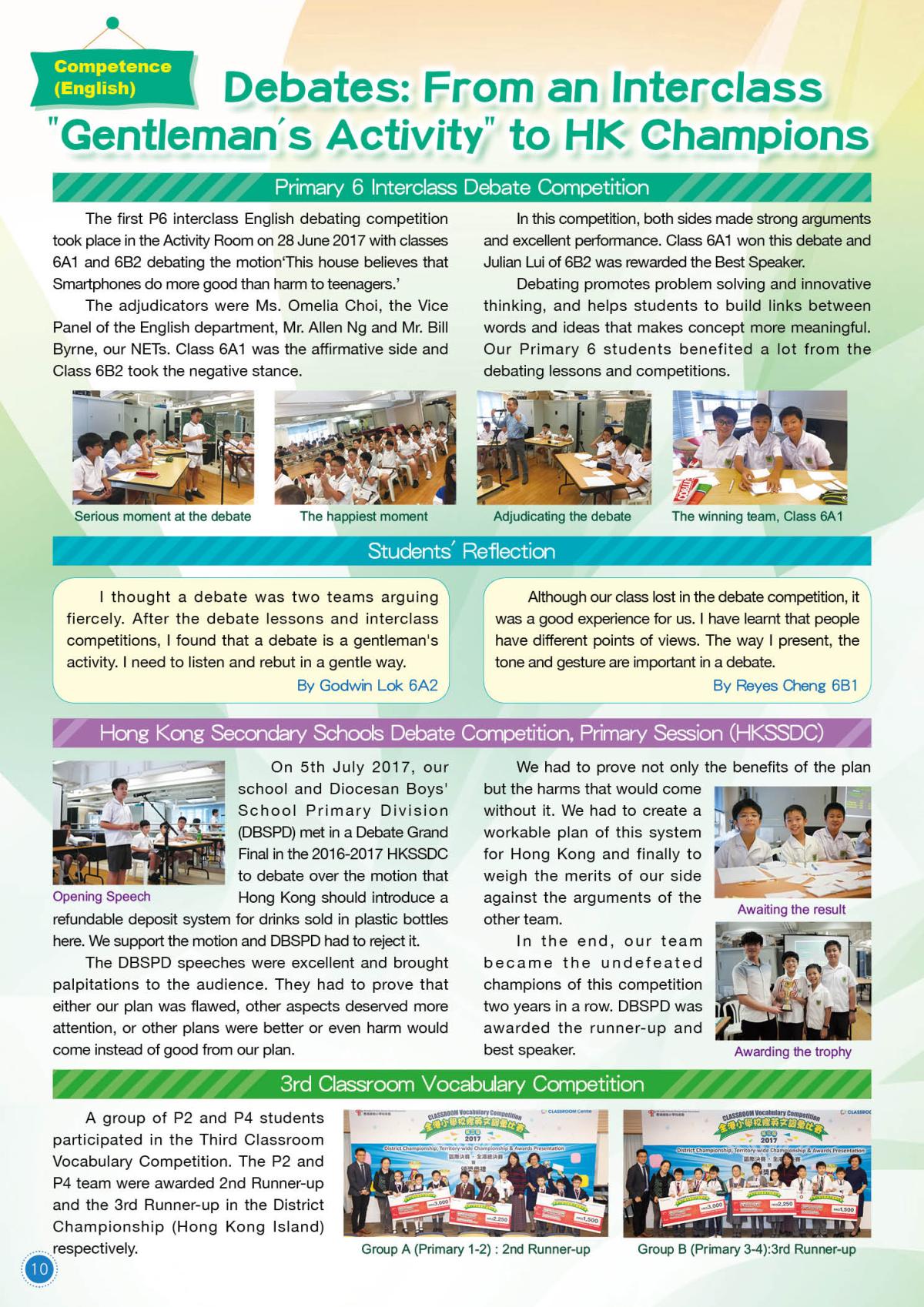 1.1 精通中文(包括廣東話和普通話)和英文,能清楚地表達自己和有說服力,並有閱讀中英文讀物的習慣。