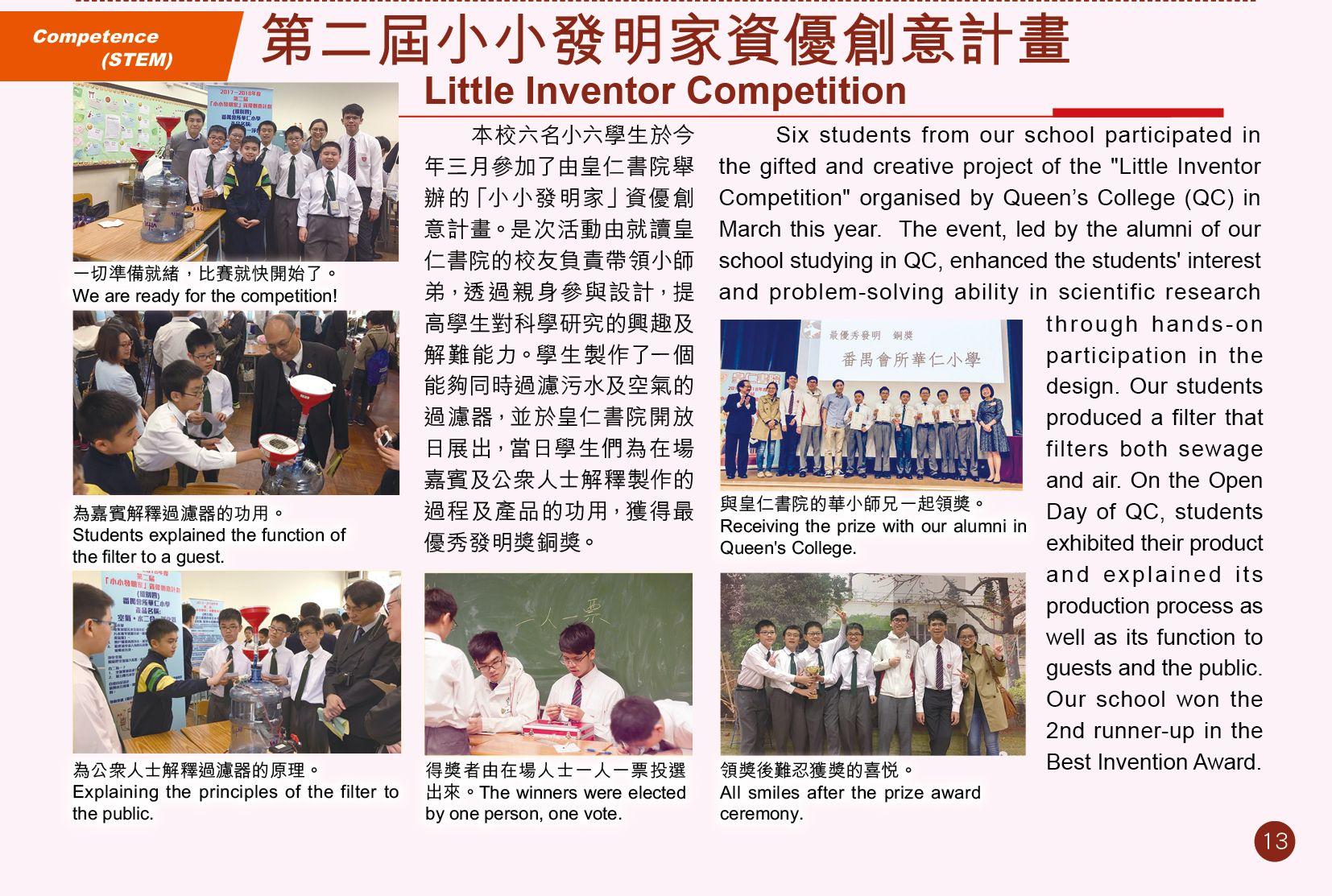 1.3 精通常識科(包括科學、科技和個人社會人文教育學習領域)的基本知識和相關能力,對社區、香港、國家和世界的發展有基本的認識。