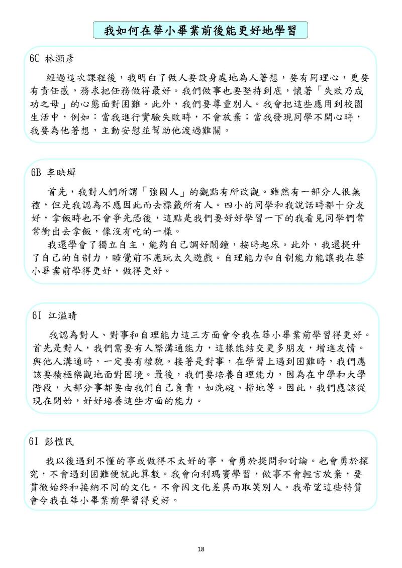 番禺會所華仁小學 畢業生特質、教師特質和家長特質