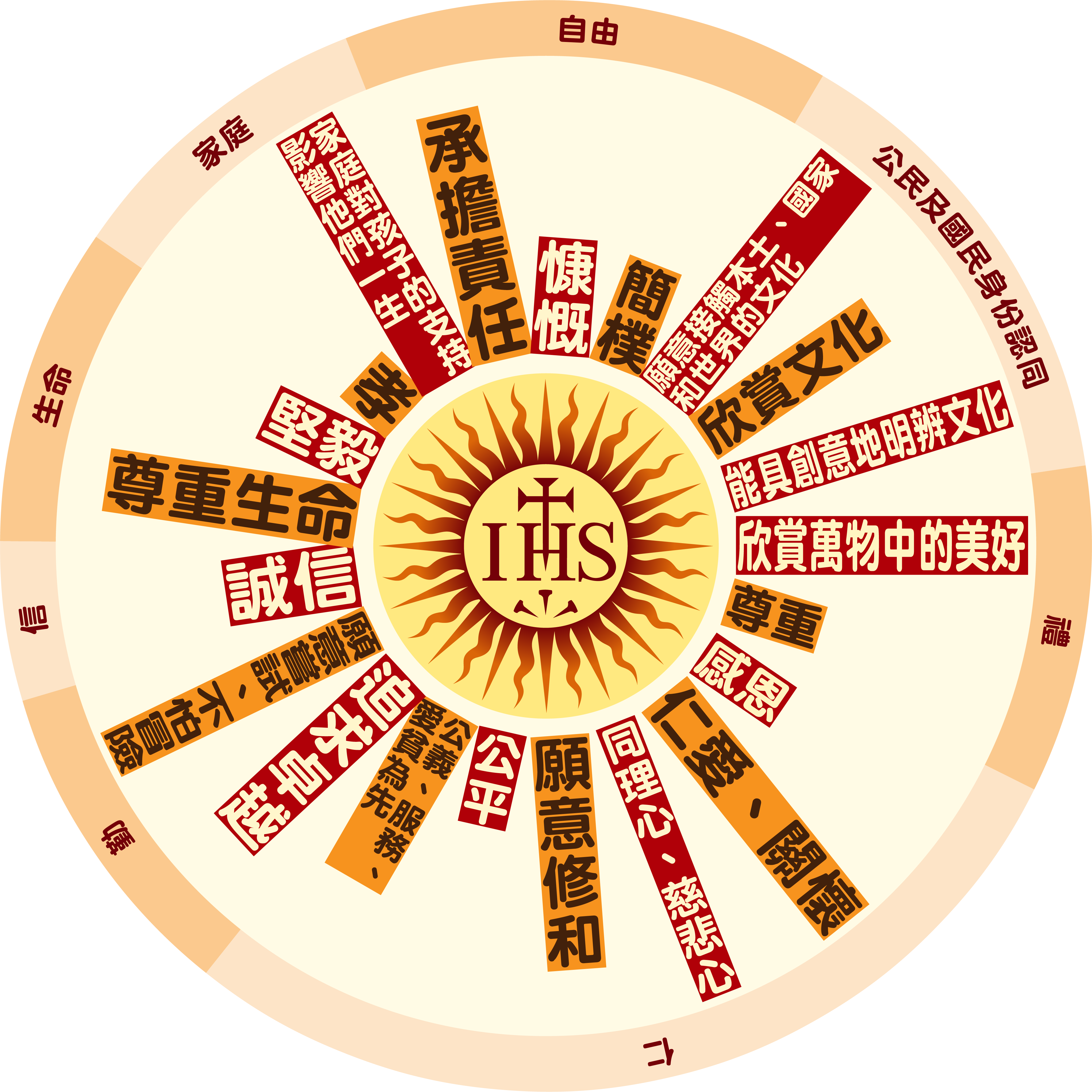 本校已按耶穌會的4C培育方向(有良知、能力、憐憫心和承擔感的人),制定畢業生特質、教師特質、相關政策方向和實踐策略,繼續將學校的教育質素提升。我們亦已按《耶穌會教育特徵》和其他相關靈修和教育傳統,制定校本21項核心價值,透過正規課程和非正規課程推行。