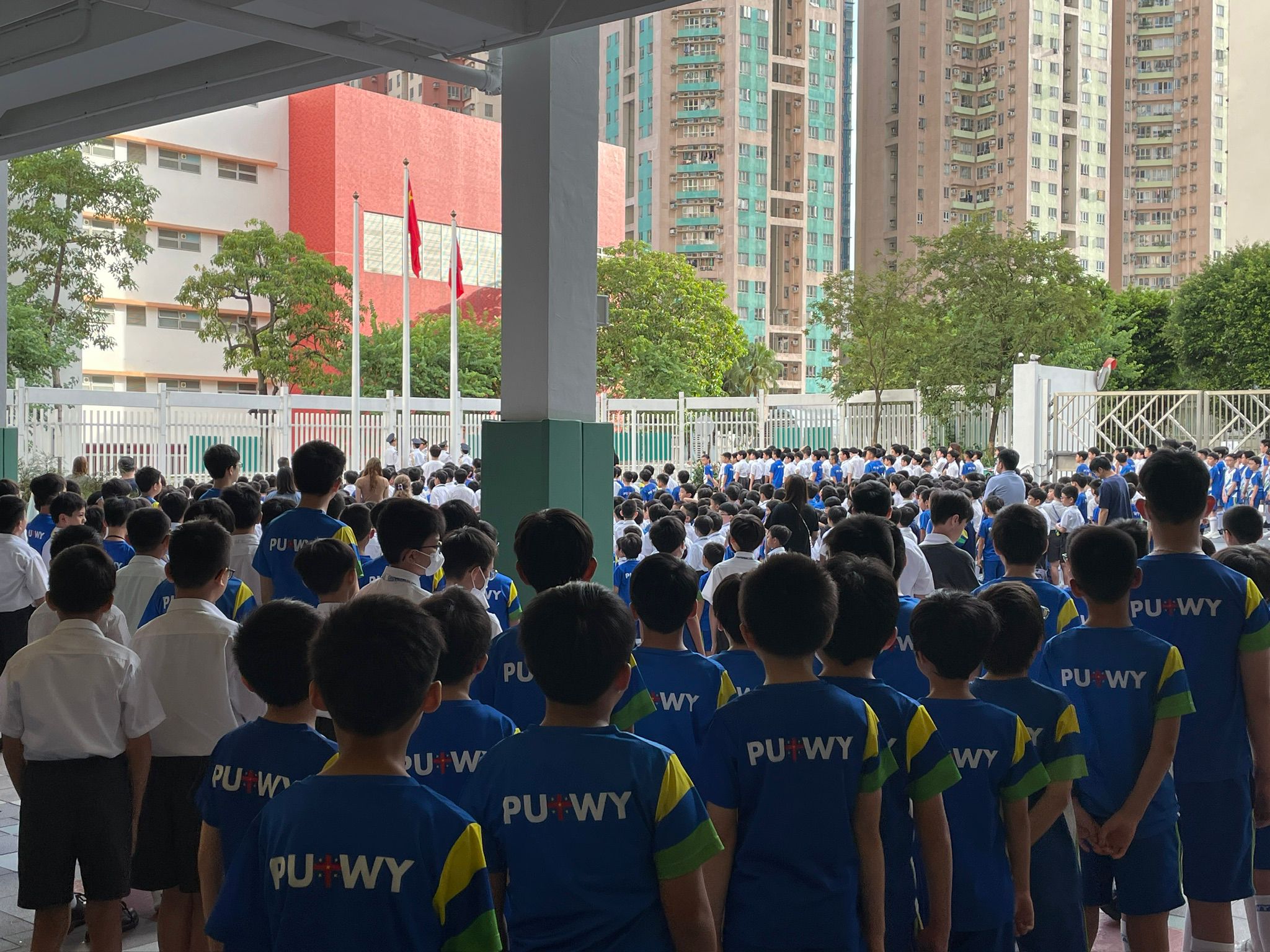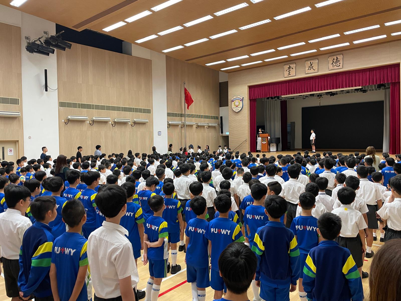 按教育局指引,於每個上課天每個上課日,以及元旦日(一月一日)、香港特別行政區成立紀念日(七月一日)和國慶日(十月一日)升掛國旗並協助學校村內的友校於公眾假期升國旗,以及每周和重要節日及活動舉行升旗禮,幫助學生認識國旗和國歌的重要性及對它們應持的尊重態度。