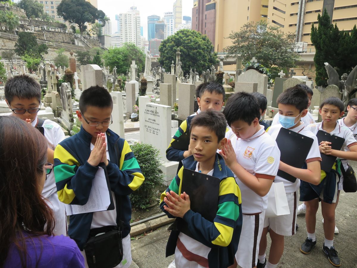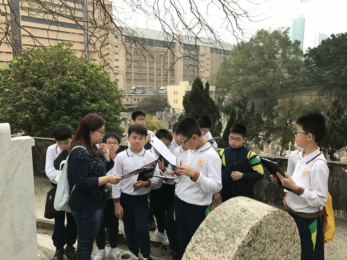 配合課題《感恩成長路》本校安排學生到跑馬地聖彌額爾墳場,進行生命教育,從出生開 始到人生的各階段進行反思,從而尋找人生的正確價值觀。