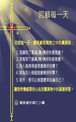 每天放學前,會於班房進行反思,回顧一天,學習感恩和欣賞萬物的真、善、美。