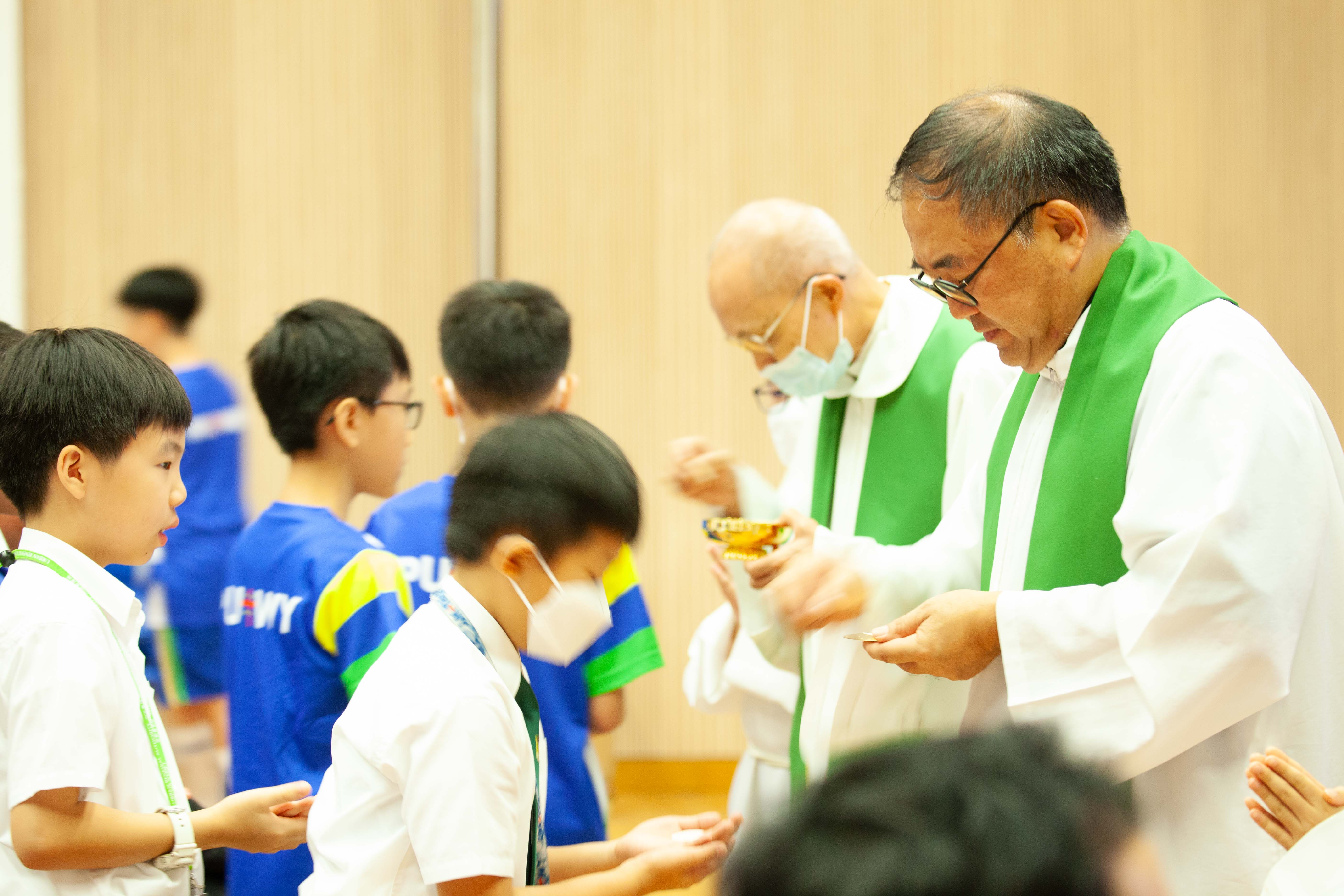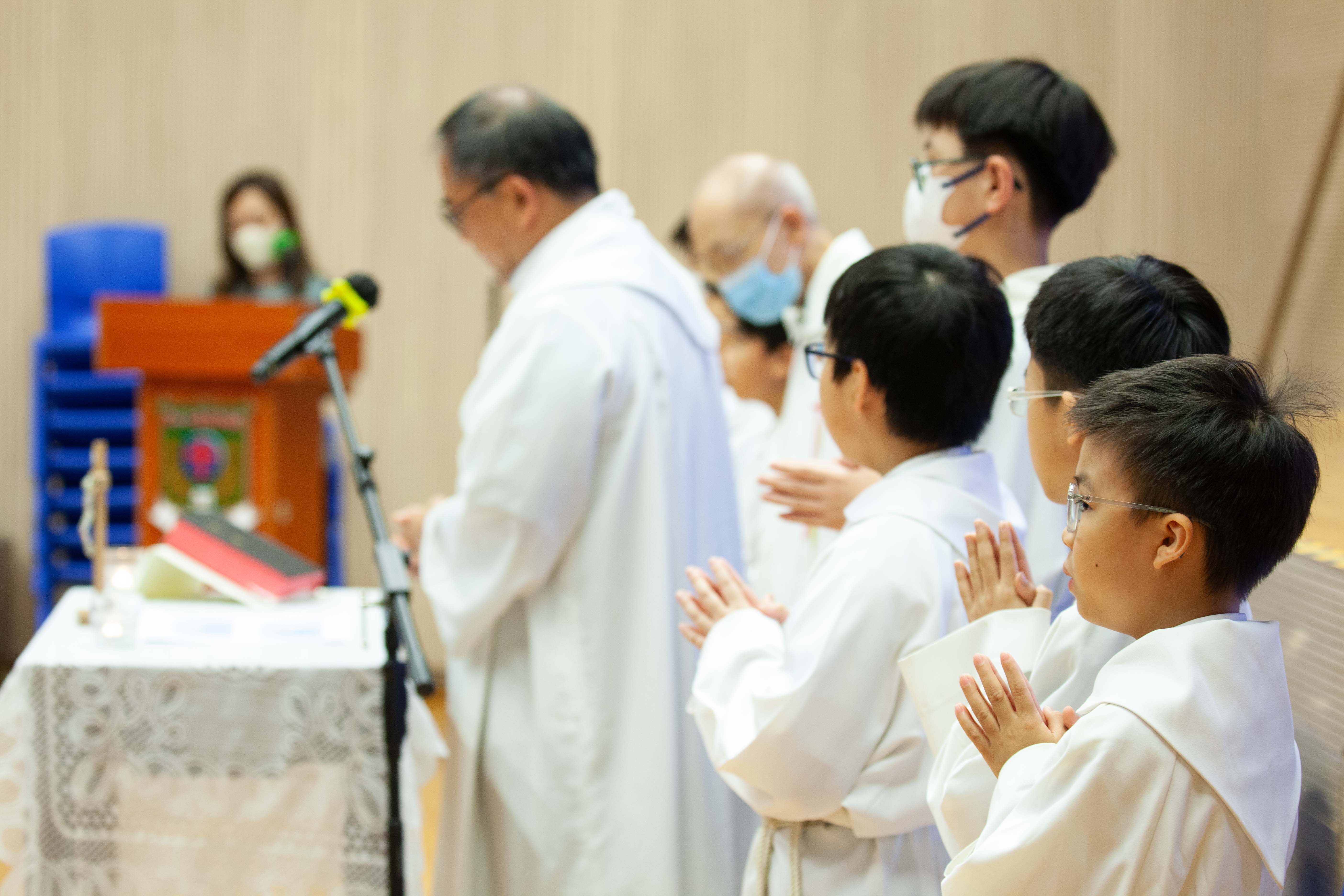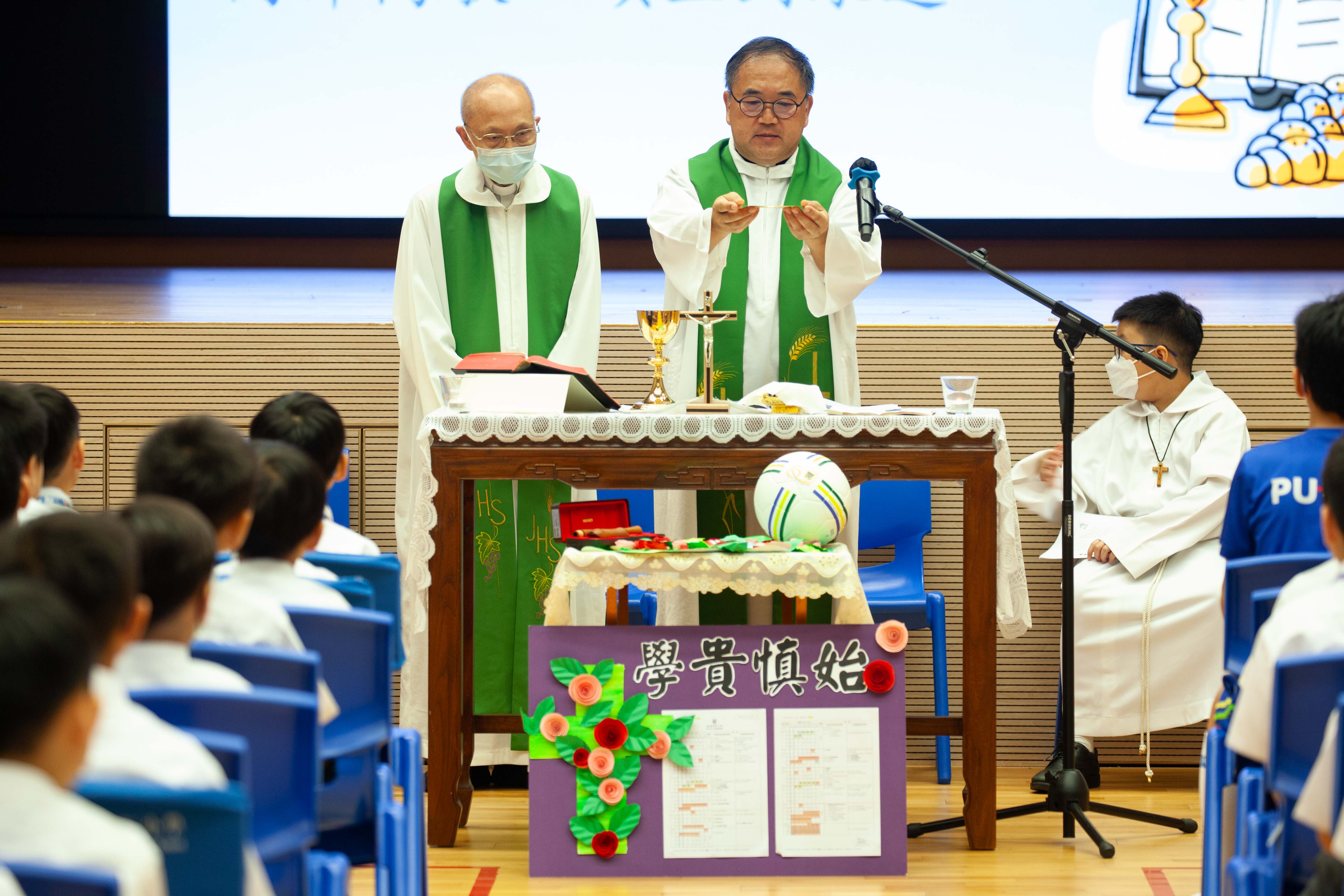 本校全年舉行不同的感恩祭,學生能虔敬地參與禮儀,感受禮儀的氣氛,並一同透過聖言和聖 詠,讚美天主。當中包括:開學彌撒、新春求恩彌撒、畢業及結業彌撒、親子彌撒。-