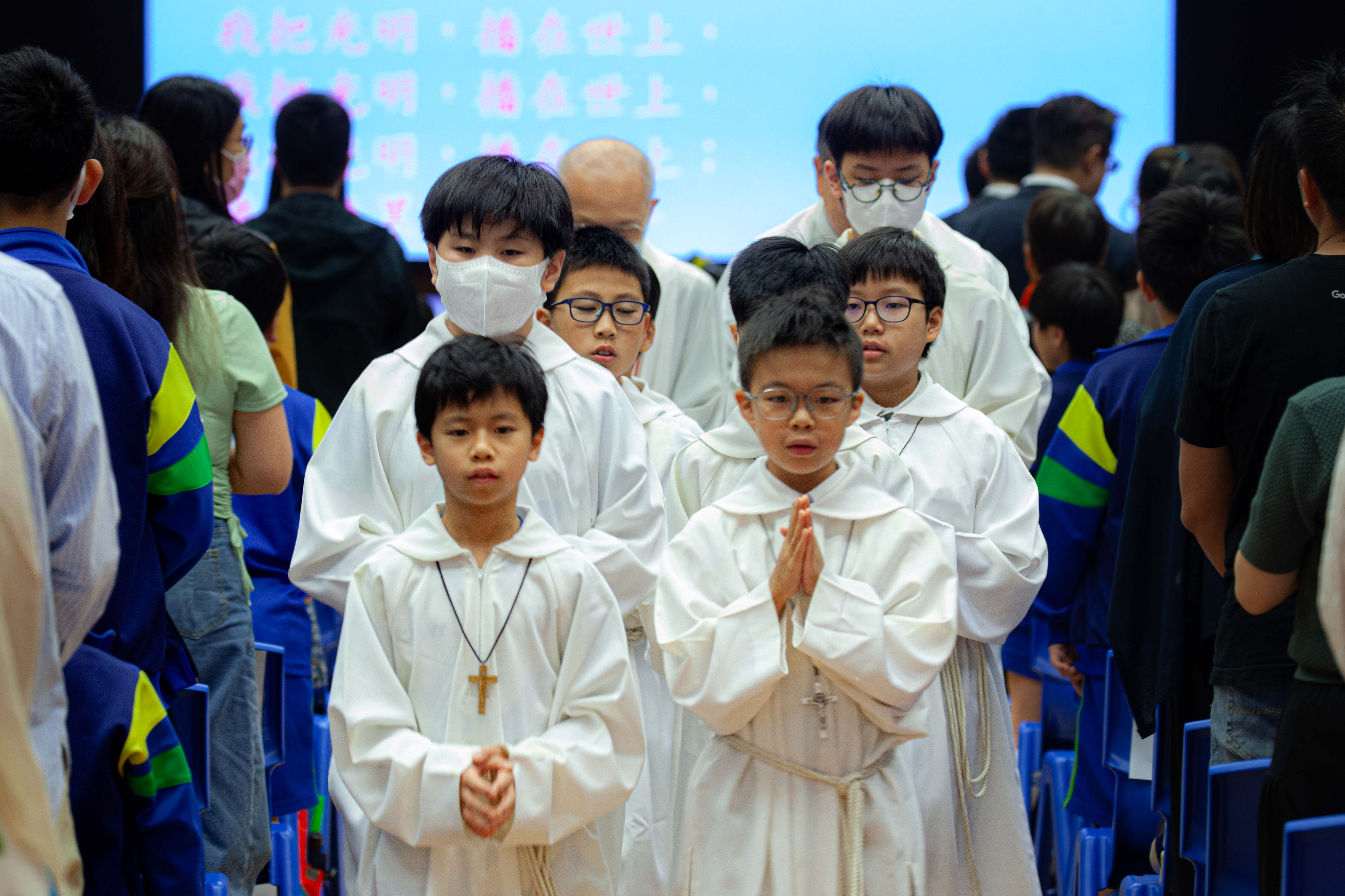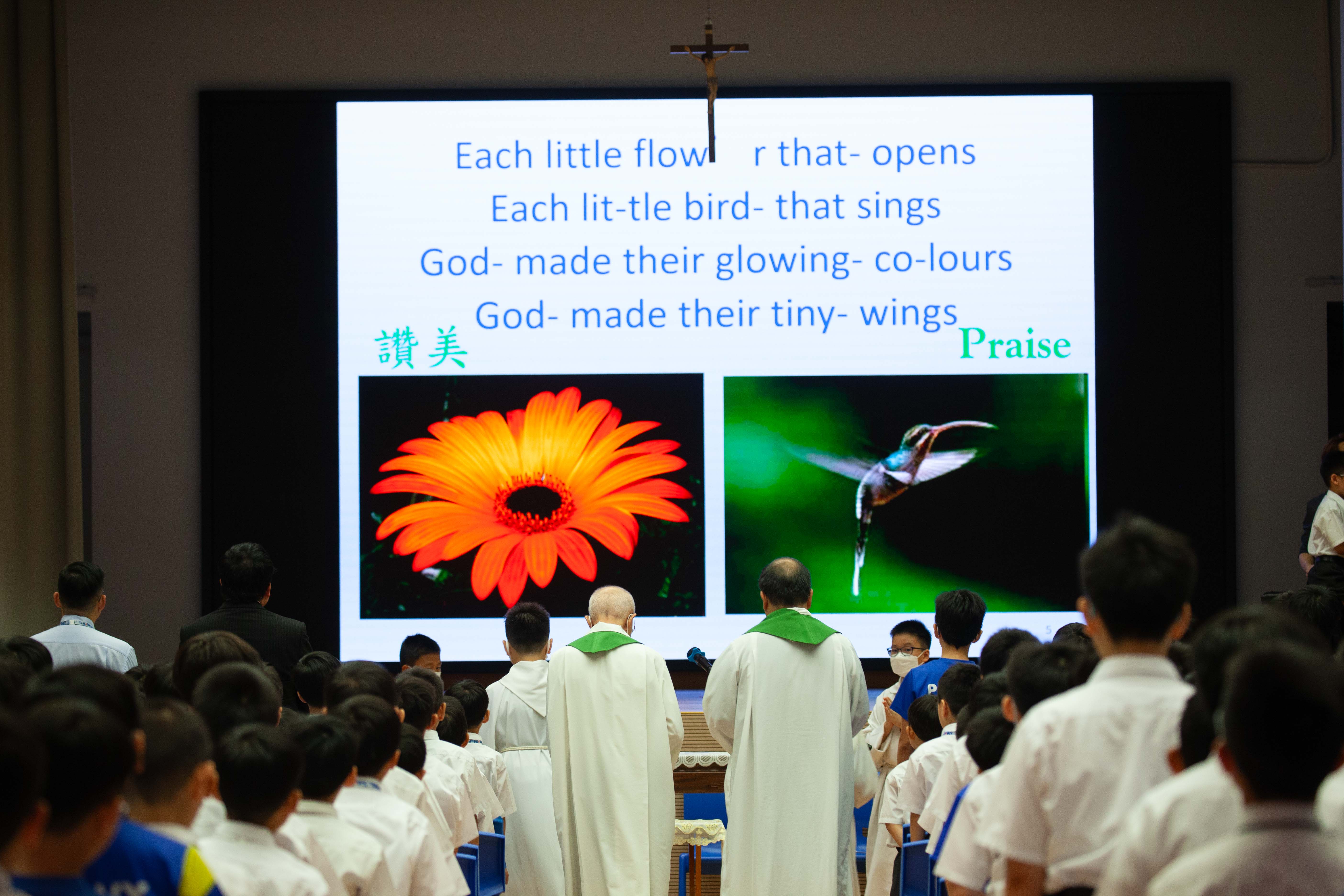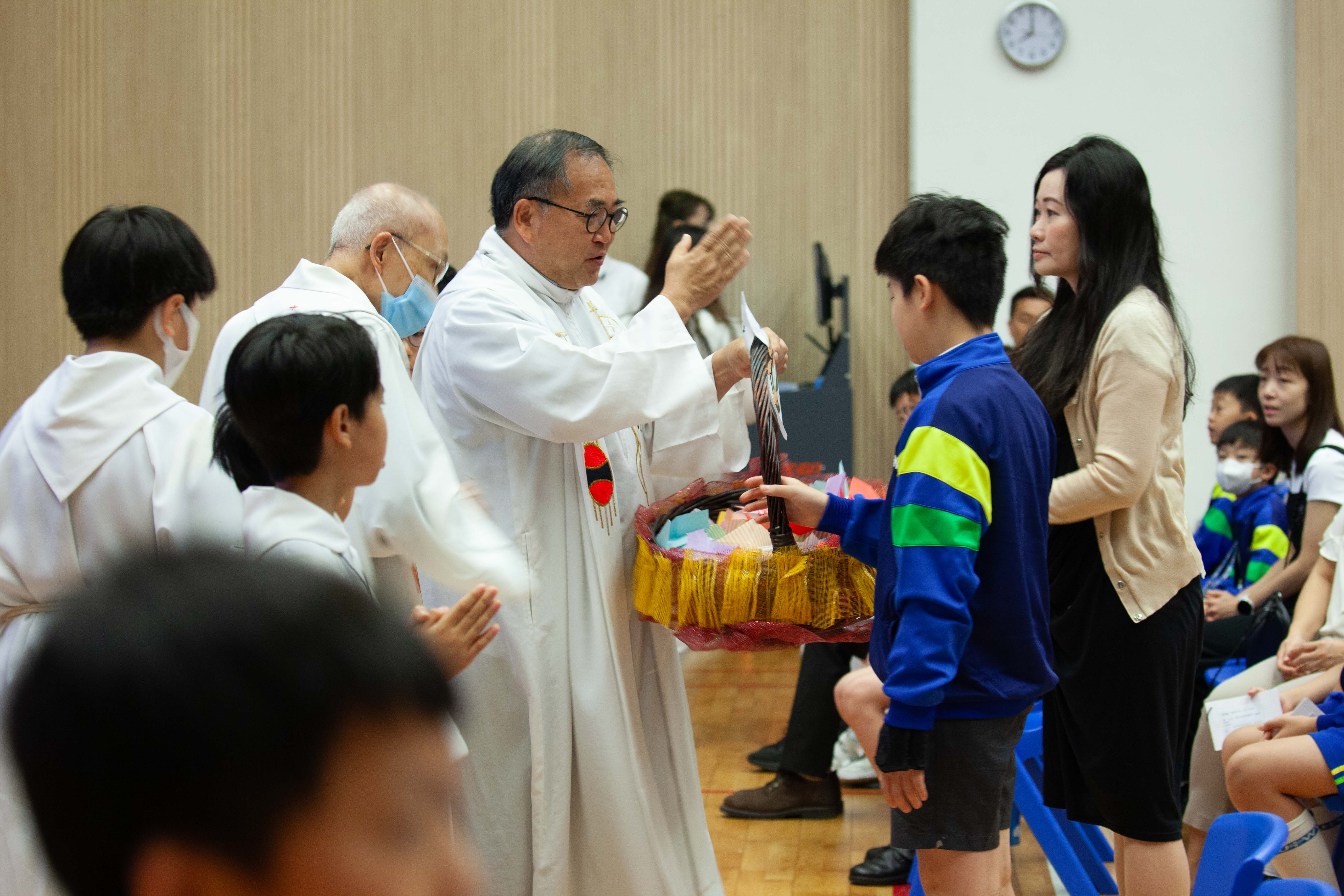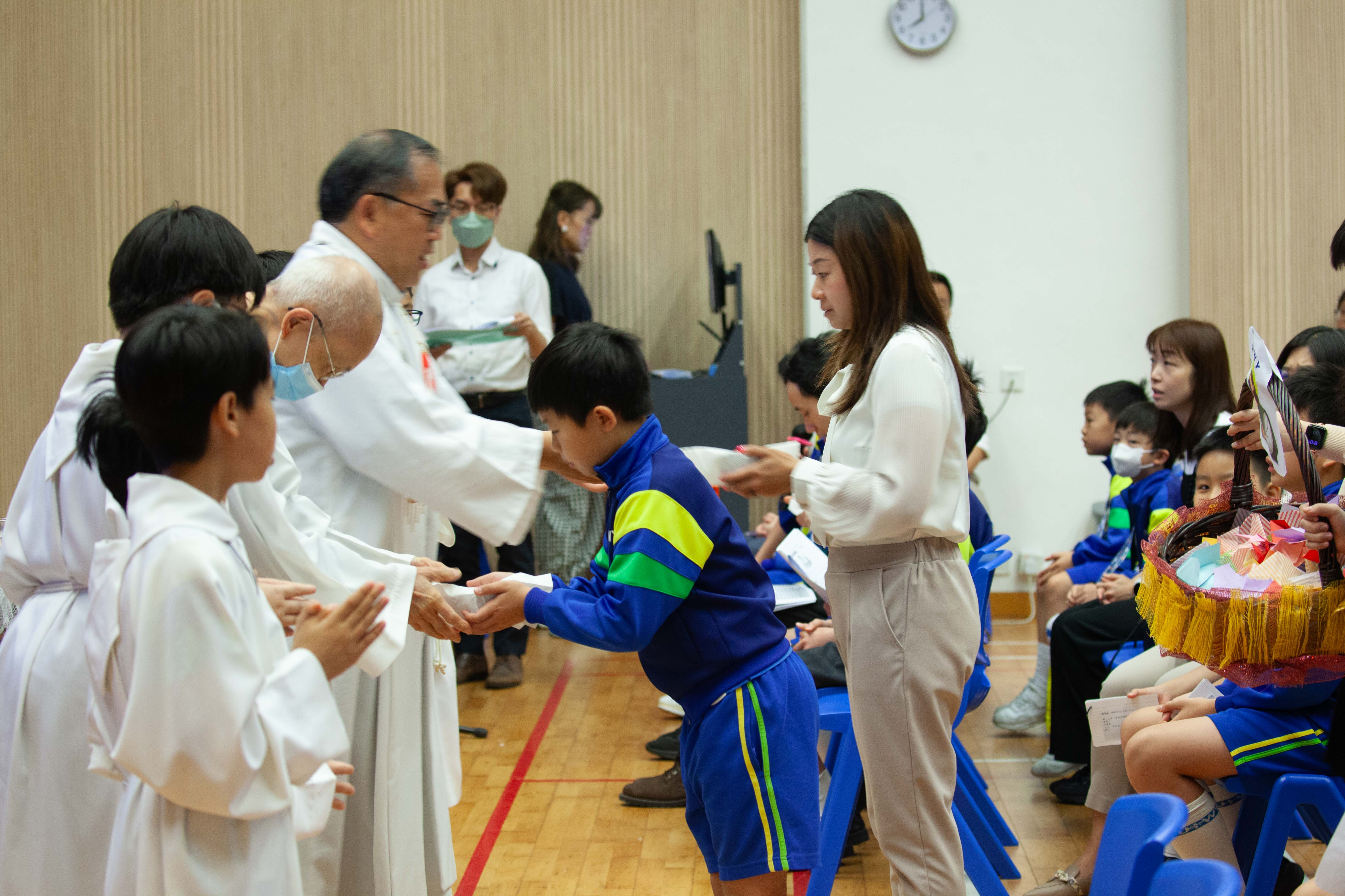本校全年舉行不同的感恩祭,學生能虔敬地參與禮儀,感受禮儀的氣氛,並一同透過聖言和聖 詠,讚美天主。當中包括:開學彌撒、新春求恩彌撒、畢業及結業彌撒、親子彌撒。-
