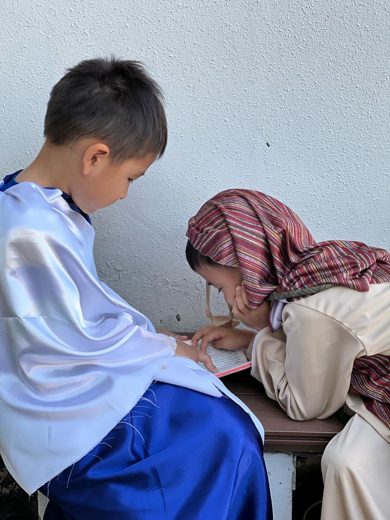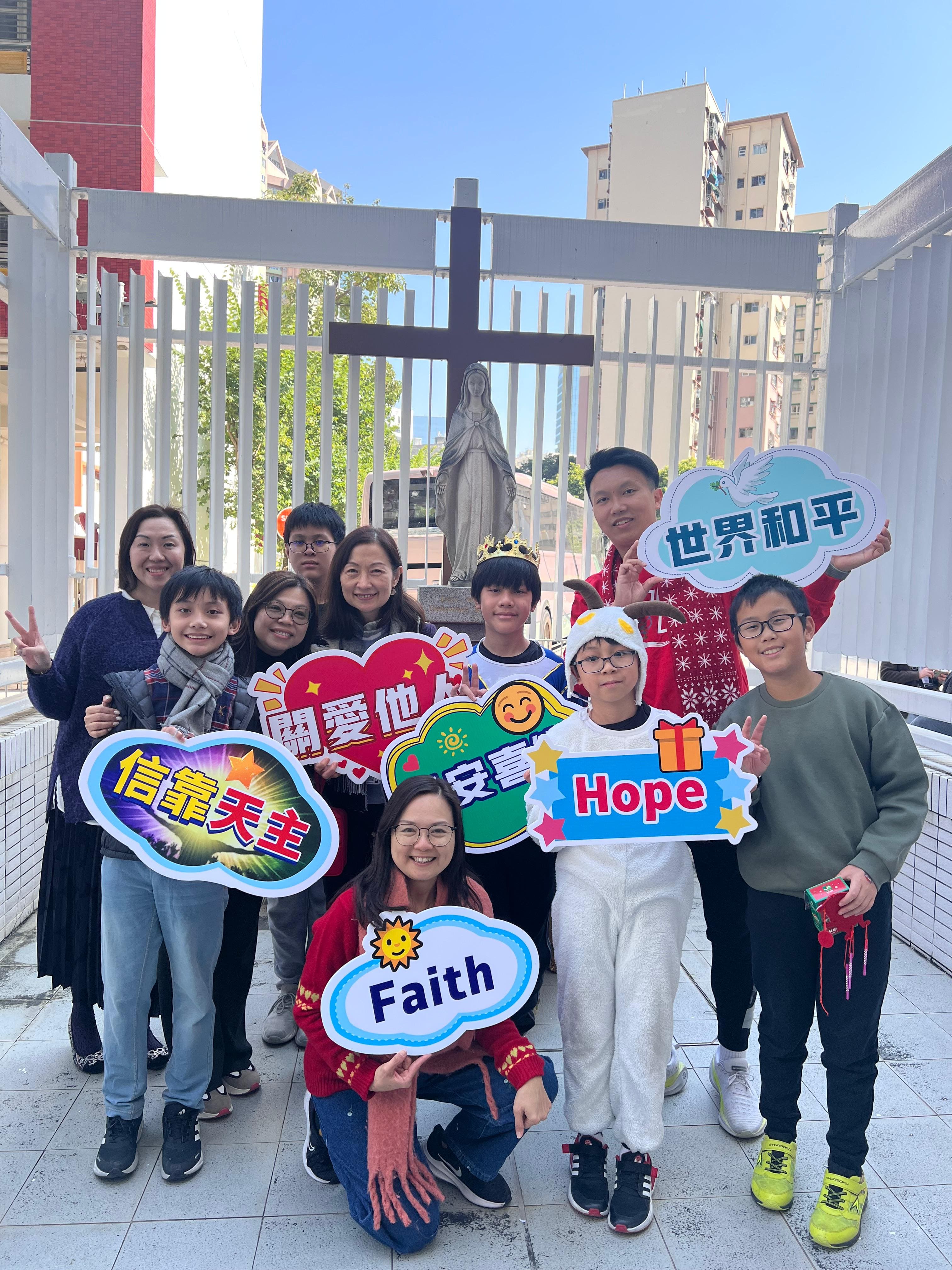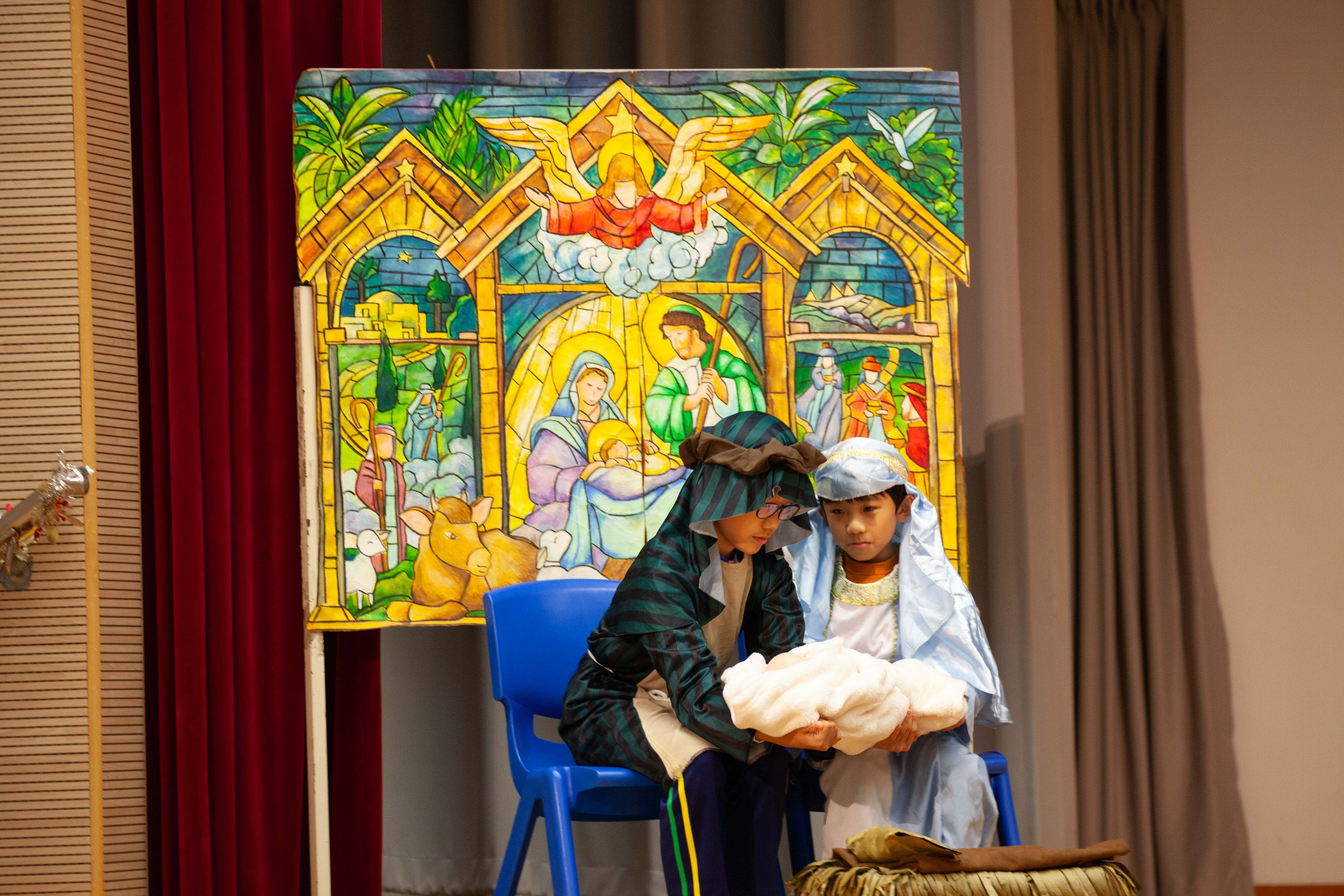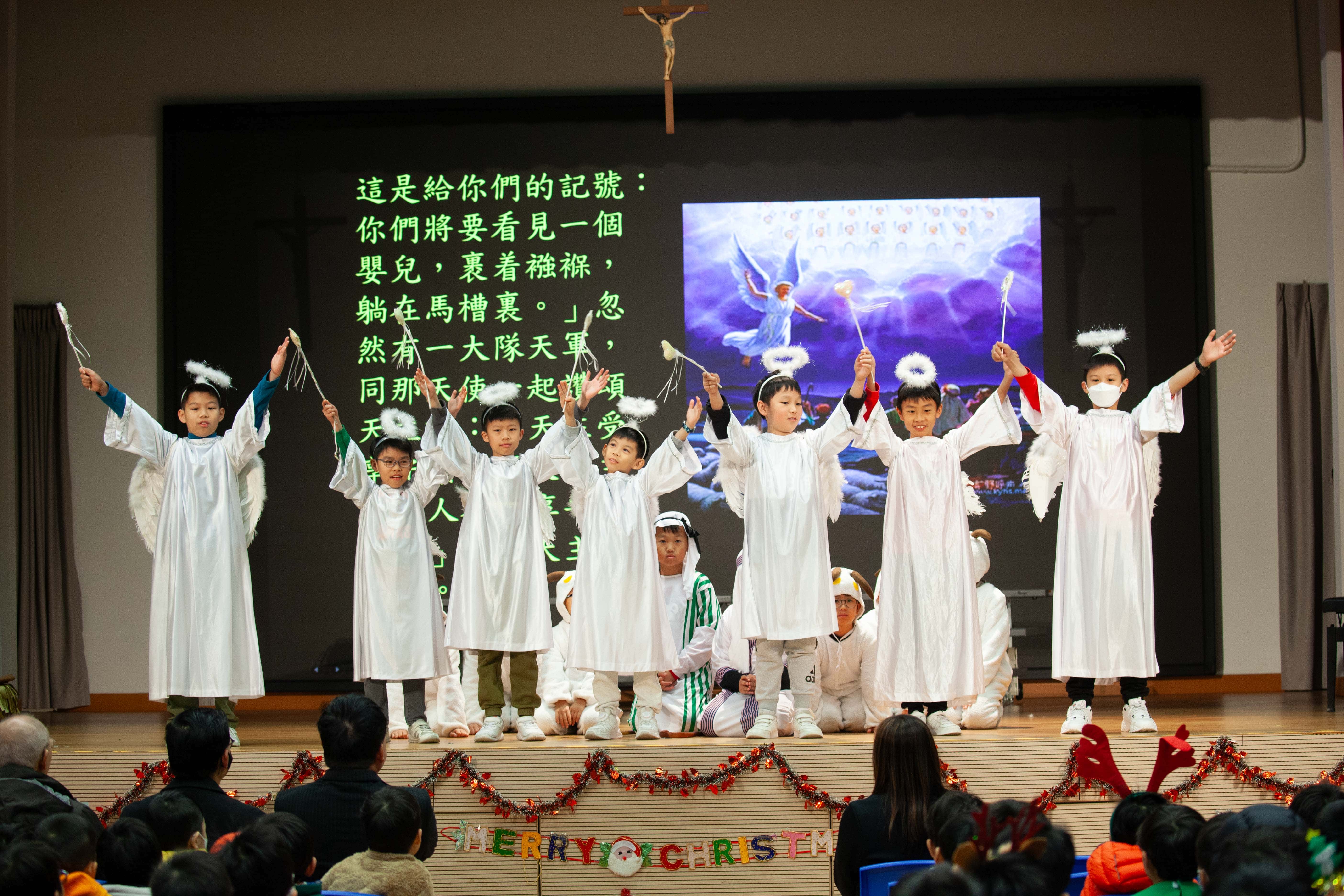 透過誦讀福音,以及學生扮演不同角色演出聖景劇,讓學生重溫耶穌降生的故事,也透過信友 禱文和神父的降福,感受聖誕節的平安和喜樂。
