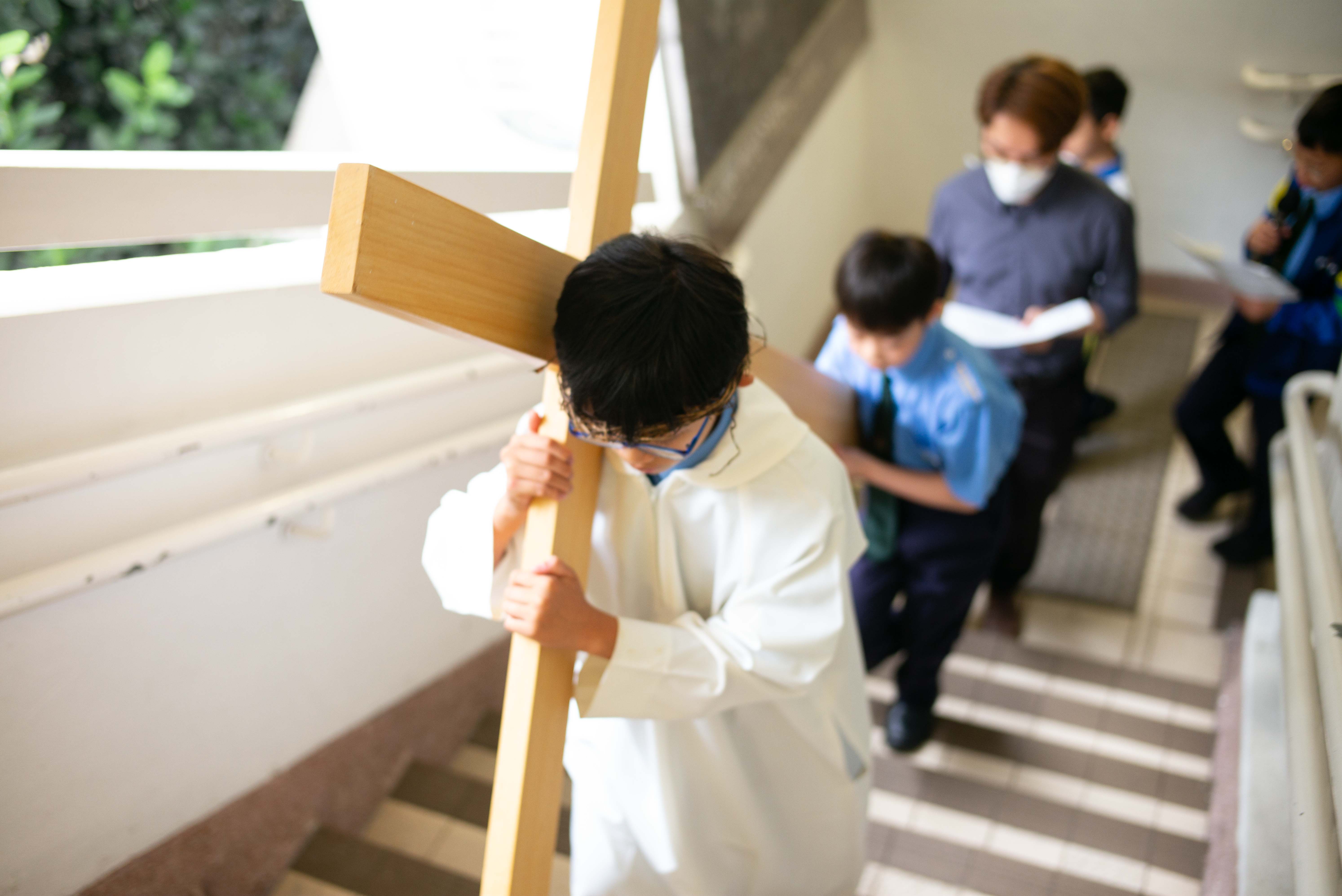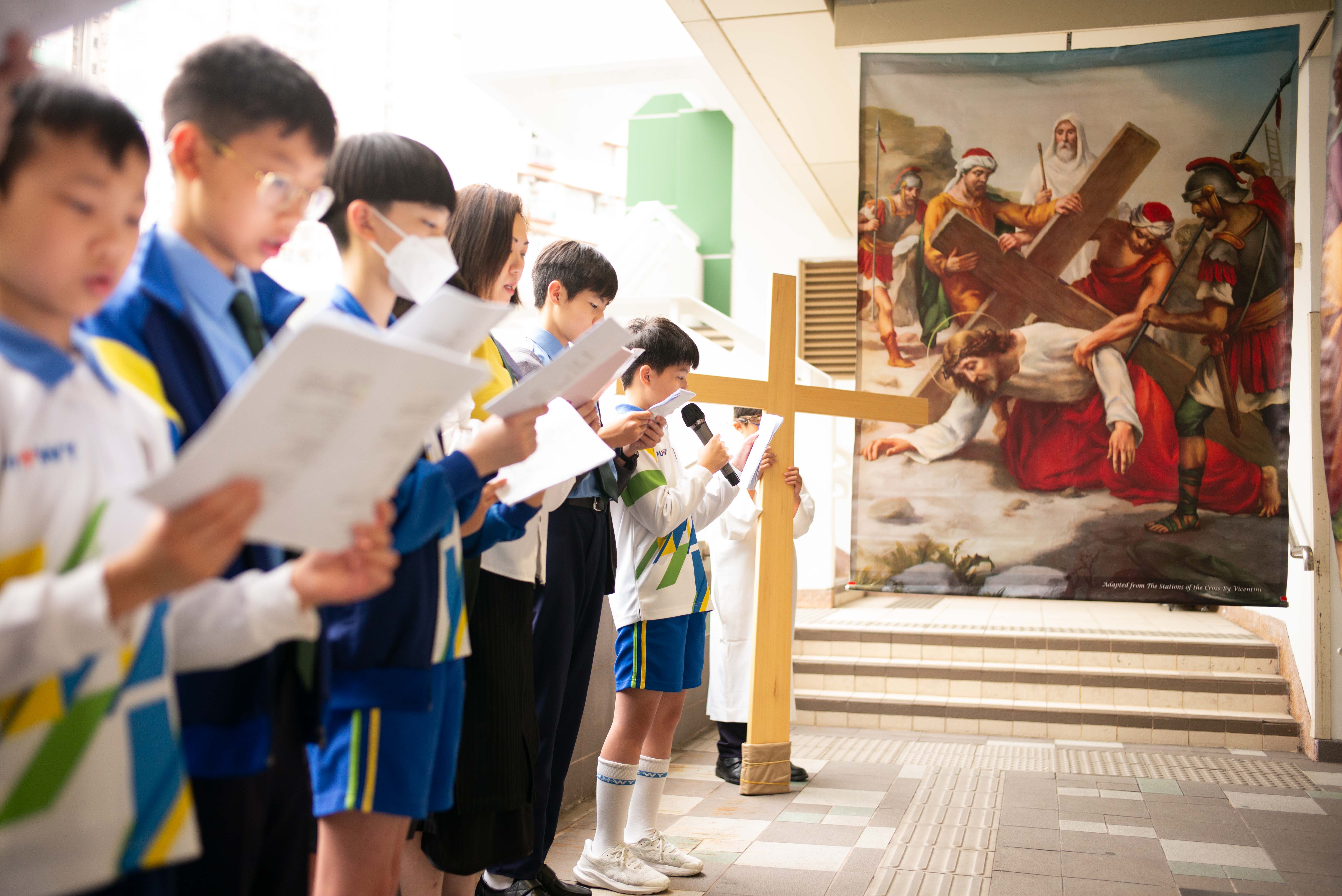 每年四旬期全校師生都會一同參與苦路善工,高年級教友學生擔當不同的崗位,實踐四旬期服務的精神。我們利用校園的信仰標記、宗教藝術品、視頻等,使學生形象化地感受和反思耶穌為我們所作的犧牲,讓我們明白主耶穌為世人受苦受難,從中反思自己的不足,並願意學習耶穌愛主愛人,願意相信及依靠死而復生的耶穌,在生活裡找到盼望。