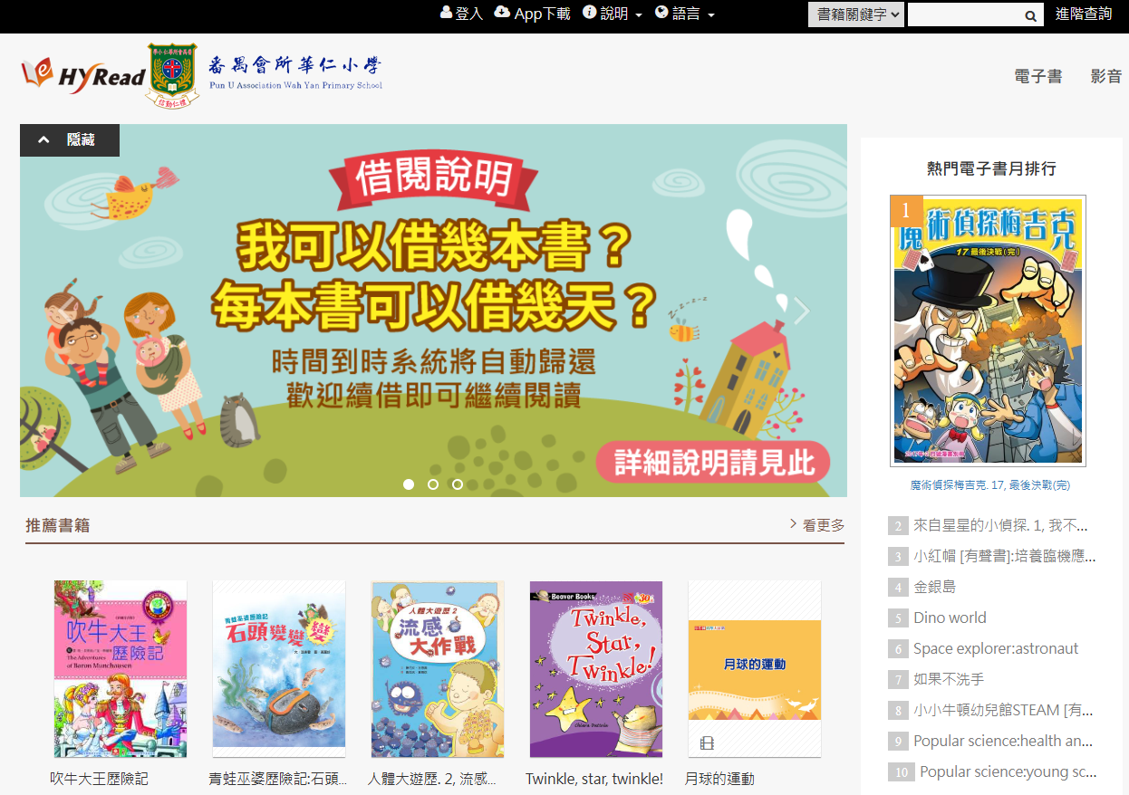 為鼓勵學生多利用電子圖書閱讀平台,本校特別舉辦「華小e悅讀」校本圖書館電子閱讀計劃。計劃詳情如下︰