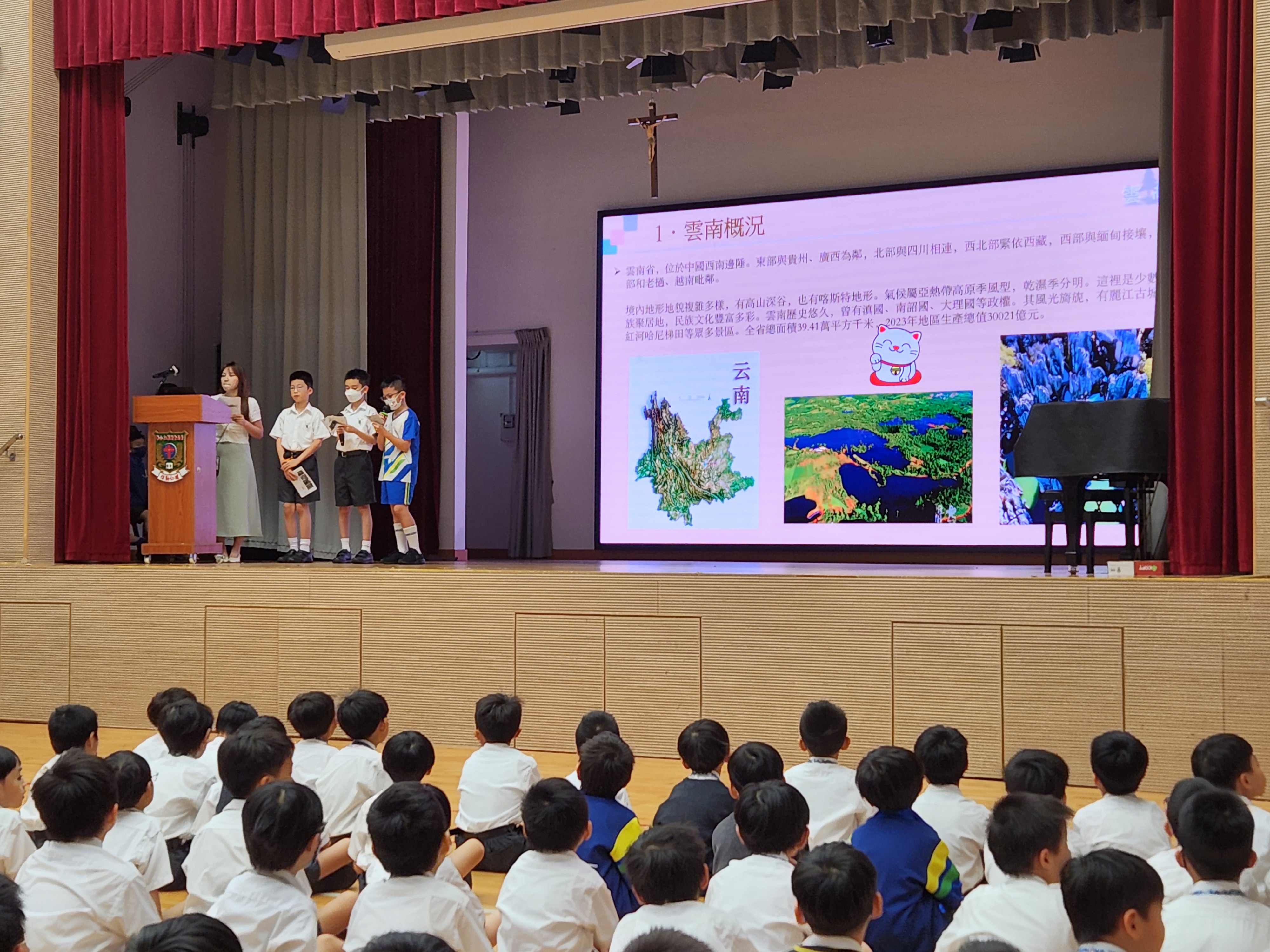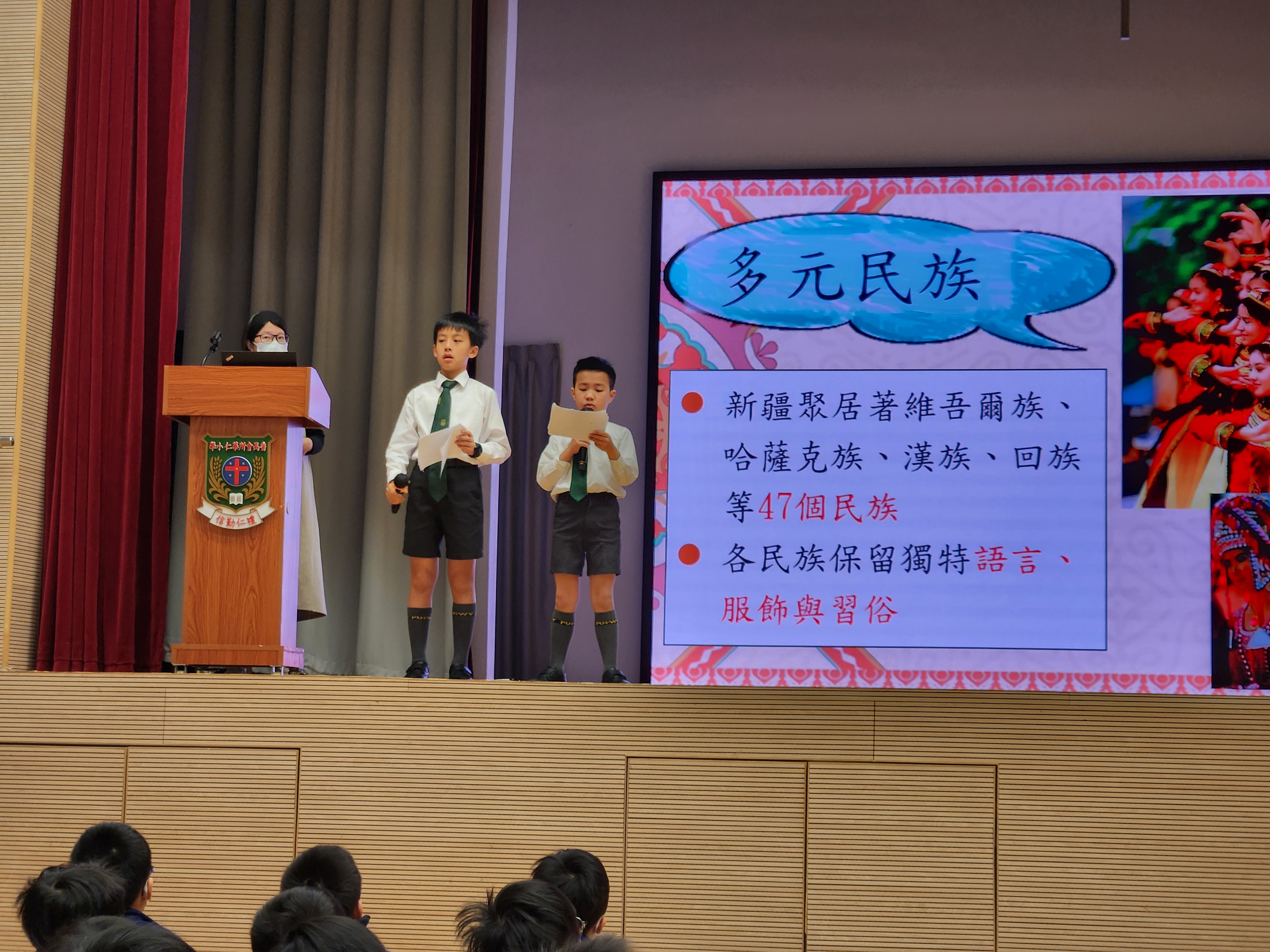 為了培養學生的國民身份認同感、維護國家安全的意識,加強校本價值觀教育,以及提升學生聆聽及說話的能力,每逢星期四國際語言日早會,由普通話老師與普通話大使擔任國際語言日早會主持和領禱員,分享與國家安全及與價值觀教育相關的主題,如中國農民豐收節、國民身分認同、國家憲法日、尊重、五四青年節等主題。