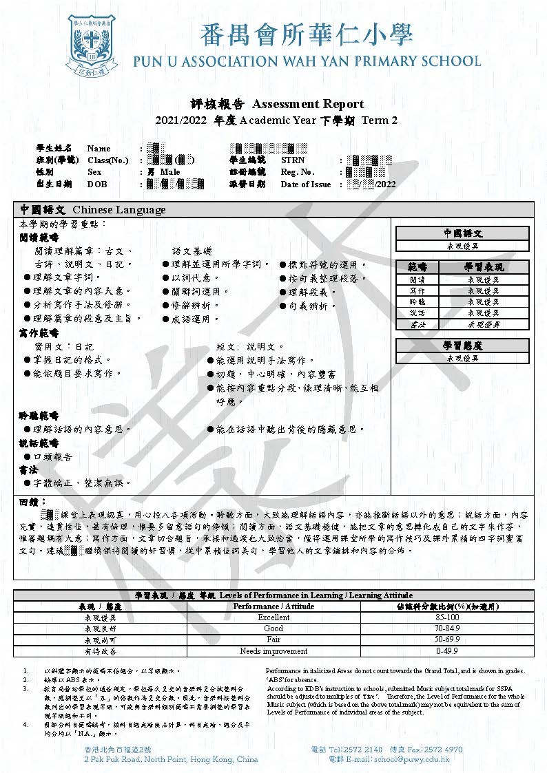 進展性評估評估內容是學生在日常課堂中所學習過的內容,除了學科知識外,還評核相關的技能、態度、價值和自學能力。